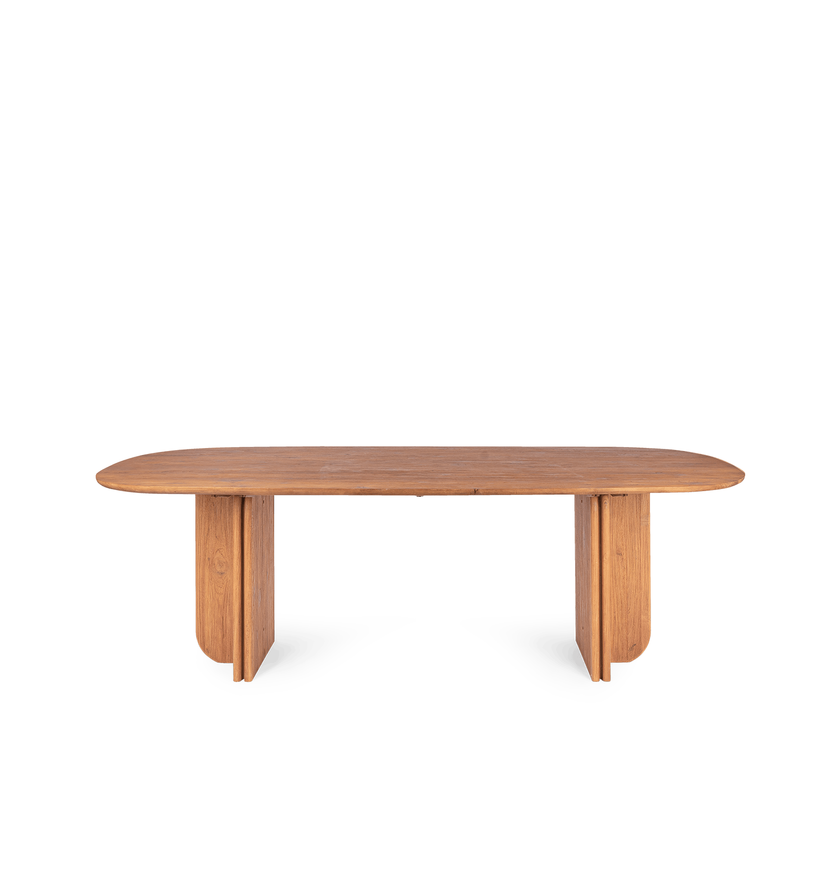De Linea eettafel is een stijlvolle en duurzame keuze voor elke eethoek. Gemaakt van massief gerecycled teakhout combineert deze tafel organische rondingen met strakke lijnen voor een modern, evenwichtig design. Het stevige blad rust op een dubbele poot met een elegant kruissysteem, wat zorgt voor stabiliteit en een uniek visueel accent. De afgeronde vorm nodigt uit tot gezellig tafelen en maakt de tafel perfect om met meerdere personen rondom te zitten. De natuurlijke houtkleur en open uitstraling geven warmte aan elk interieur. Kies de Linea eettafel voor een eyecatcher die duurzaamheid, functionaliteit en design moeiteloos samenbrengt. Verkrijgbaar in meerdere afmetingen, perfect afgestemd op elke ruimte en woonwens.