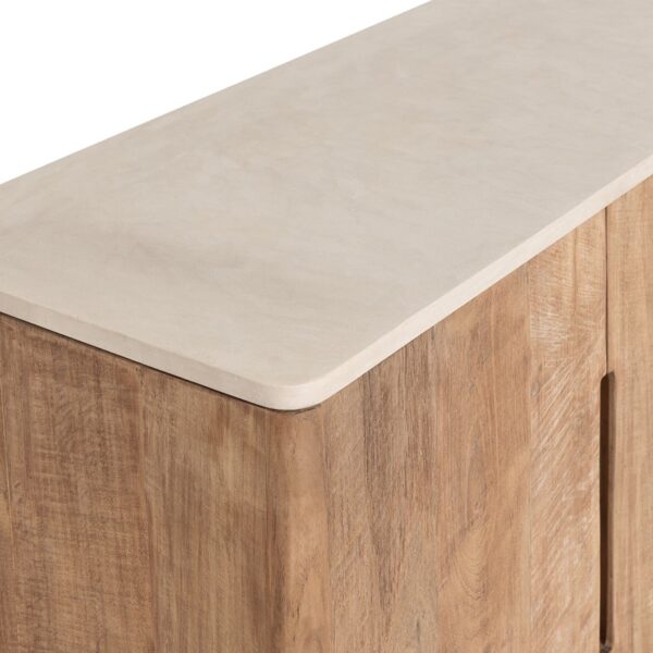 Het hangende tv-meubel uit de Bliss collectie is een elegante en praktische toevoeging aan je interieur. Het blad is afgewerkt met mortex, een duurzaam en handgemaakt materiaal van kalk, cement en mineralen. Dankzij de beschermlaag is het waterdicht, hittebestendig en bestand tegen krassen – perfect voor intensief gebruik. Het meubel combineert twee open vakken met meerdere gesloten kastjes, zodat je eenvoudig een opgeruimde en stijlvolle opstelling creëert. De verzonken handgrepen geven het geheel een moderne, strakke look. Door het zwevende ontwerp oogt je woonkamer ruimtelijker. Een tijdloos tv-meubel met luxe uitstraling én slimme opbergruimte.